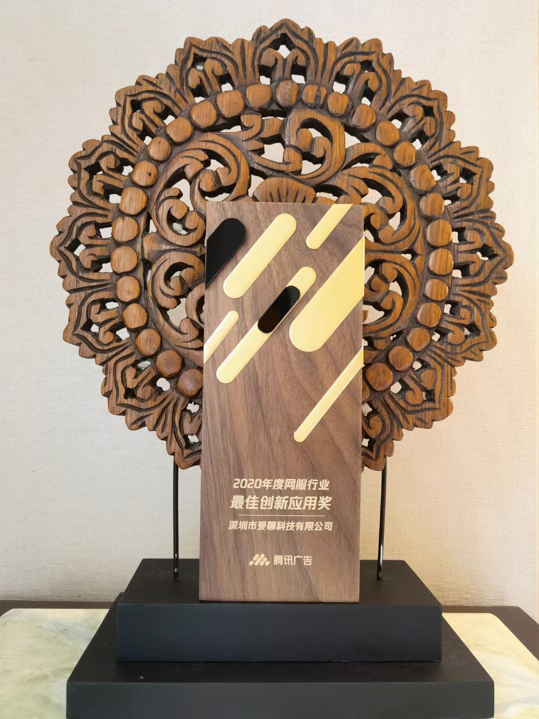 图为爱聊科技荣获“腾讯广告最佳创新应用奖”